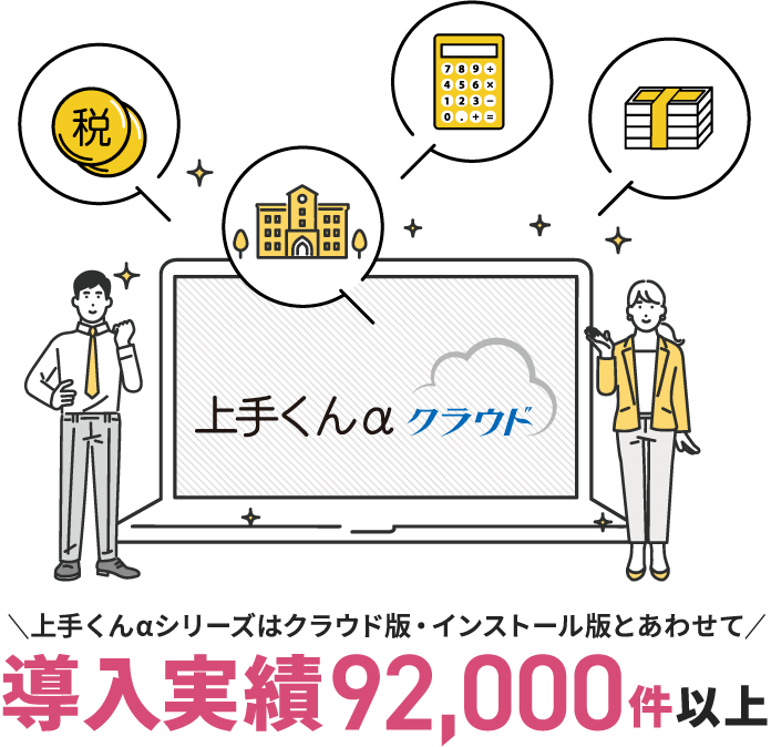 上手くんαクラウドは会計事務所の顧問先となる企業や個人事業主の自計化を支援する会計クラウドサービスです。経理業務に特化した「経理上手くんαクラウド」のほかに、給与計算・年末調整・減価償却計算といった企業経営に欠かせないソフトウェアもご用意しています。経理処理の初心者からベテランの方まで幅広くカバーできるように、会計知識のレベルを問わずお使いいだだけます。