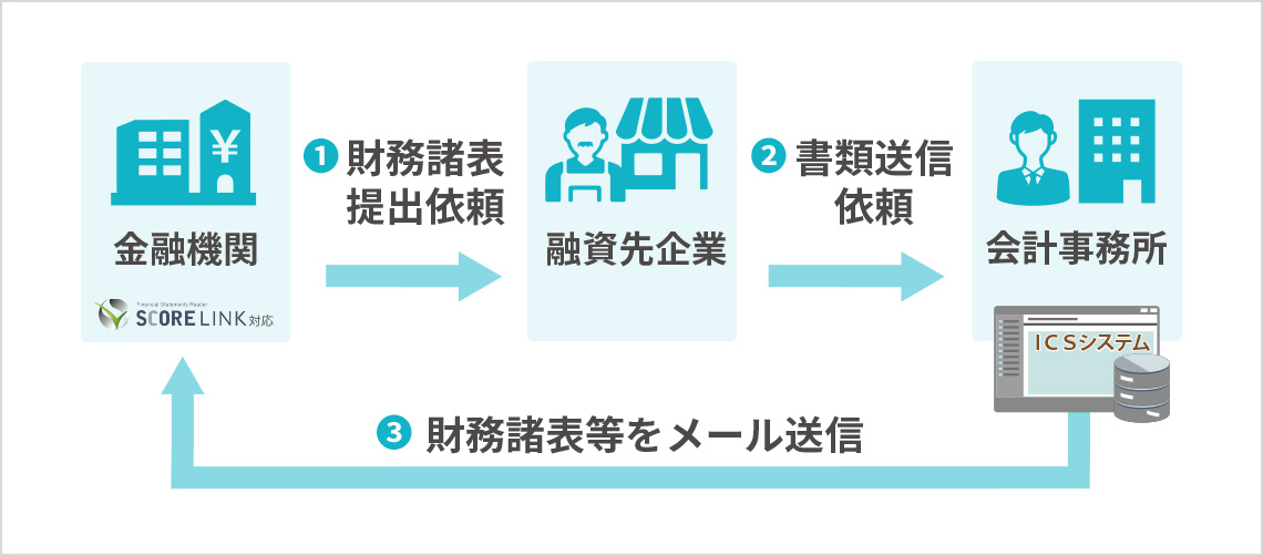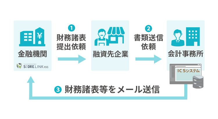 決算関係書類送信機能は顧問先企業に代わって、会計事務所が月次試算表、年度決算書、法人税申告書などの財務情報を金融機関に送付する機能です。顧問先の融資審査を迅速化し、顧問先の負担を軽減できます。